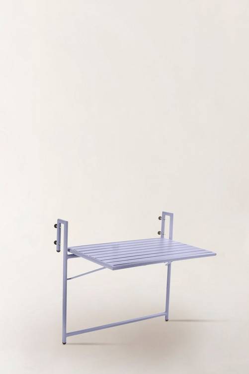 Balkongbord av pulverlackerad aluminium med matt yta som inte bländar i solskenet. Praktisk modell som du fäller upp när du behöver bordet, annars kan det hänga nedfällt utan att ta plats. NAVONA tål att hänga kvar utomhus på balkong- eller altanräcket. Du slipper bära så fort du vill sitta ute. Låg vikt. Material: Aluminium. Storlek: Höjd 15,5 cm, Bredd: 66 cm, Djup: 40 cm. Bordsskiva 40×66 cm. Passar räcke som är max 4,5 cm brett. Skötselråd: Torkas av med lätt fuktad trasa. Tips/råd: NAVONA är fint som litet blombord om du vill odla på balkongen.