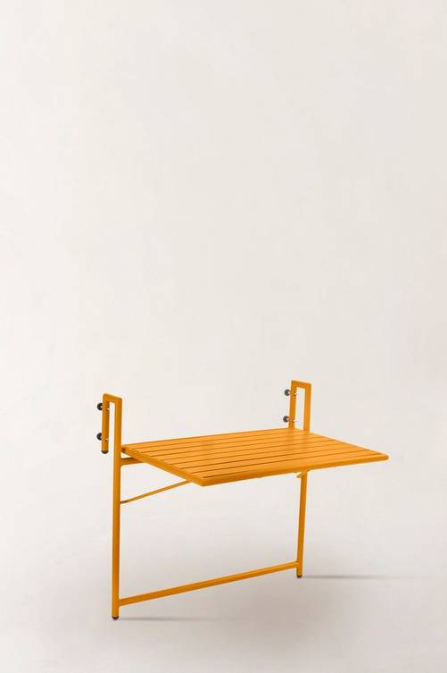 Balkongbord av pulverlackerad aluminium med matt yta som inte bländar i solskenet. Praktisk modell som du fäller upp när du behöver bordet, annars kan det hänga nedfällt utan att ta plats. NAVONA tål att hänga kvar utomhus på balkong- eller altanräcket. Du slipper bära så fort du vill sitta ute. Låg vikt. Material: Aluminium. Storlek: Höjd 15,5 cm, Bredd: 66 cm, Djup: 40 cm. Bordsskiva 40×66 cm. Passar räcke som är max 4,5 cm brett. Skötselråd: Torkas av med lätt fuktad trasa. Tips/råd: NAVONA är fint som litet blombord om du vill odla på balkongen.