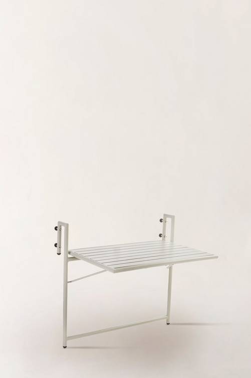 Balkongbord av pulverlackerad aluminium med matt yta som inte bländar i solskenet. Praktisk modell som du fäller upp när du behöver bordet, annars kan det hänga nedfällt utan att ta plats. NAVONA tål att hänga kvar utomhus på balkong- eller altanräcket. Du slipper bära så fort du vill sitta ute. Låg vikt. Material: Aluminium. Storlek: Höjd 15,5 cm, Bredd: 66 cm, Djup: 60 cm. Bordsskiva 39,3×60 cm. Passar räcke som är max 4,5 cm brett. Skötselråd: Torkas av med lätt fuktad trasa. Tips/råd: NAVONA är fint som litet blombord om du vill odla på balkongen.