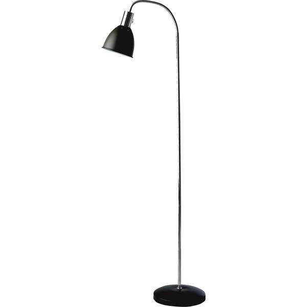 Golvlampa, max 40W, e27-sockel, exkl. glödlampa med 1,8 m sladd och med kontakt. – Svart metallskärm och fot och flexarm