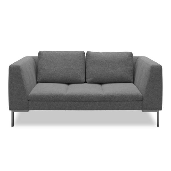 kombination , 2 sits Soffa, siddehøjde 38 cm. – Denno 1261 Deep Grey textil, stomme i borstad stål och S: Kallsk/fiber R: Skum/dun