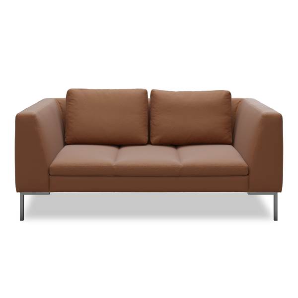 kombination , 2 sits Soffa, siddehøjde 38 cm. – Martel 971 Cognac läder/spalt, stomme i borstad stål och S: Kallsk/fiber R: Skum/dun