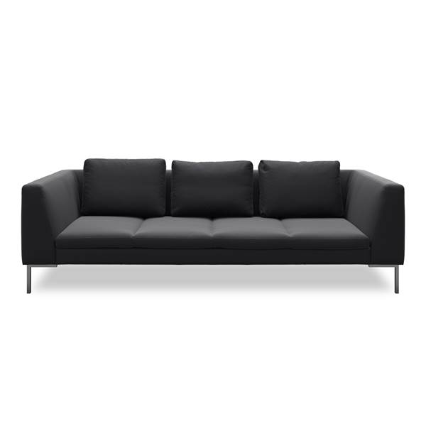 kombination , 3 sits Soffa, siddehøjde 38 cm. – Martel 970 Black läder/spalt, stomme i borstad stål och S: Kallsk/fiber R: Skum/dun
