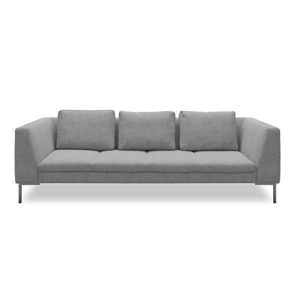 kombination , 3 sits Soffa, siddehøjde 38 cm. – Austin 336 Grey klädsel, stomme i borstad stål och S: Kallsk/fiber R: Skum/dun