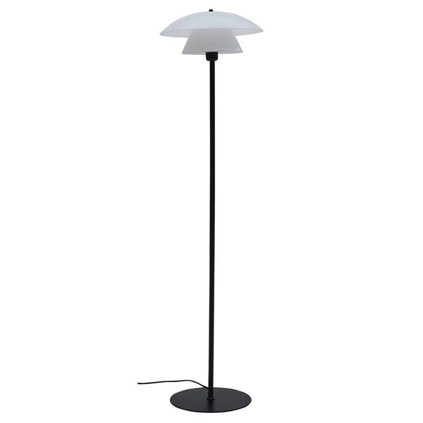 Golvlampa, inkl. lampskärm, max 5W, e27-sockel och exkl. glödlampa. – Vit opalskärm och mattsvart metallfot