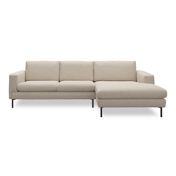 2½ sits högervänd Soffa med schäslong, siddehøjde 47 cm. – Stipa 4 Nature textil, ben nr 145 i svartlackerad metall och S:pock.fjä/kallsk R:kallskum m/fib