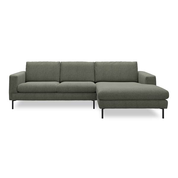 2½ sits högervänd Soffa med schäslong, siddehøjde 47 cm. – Austin 13 Winter Moss textil, ben nr 145 i svartlackerad metall och S:pock.fjä/kallsk R:kallskum m/fib