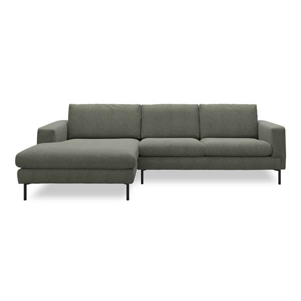 2½ sits vänstervänd Soffa med schäslong, siddehøjde 47 cm. – Austin 13 Winter Moss textil, ben nr 145 i svartlackerad metall och S:pock.fjä/kallsk R:kallskum m/fib