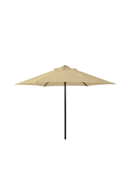 Parasoll 200 cm i stål/naturfärgad polyester. Stång Ø48 mm. Svart stång med svarta spröt. Material: Stål Höjd: 217 cm Längd: 200 cm Bredd: 200 cm