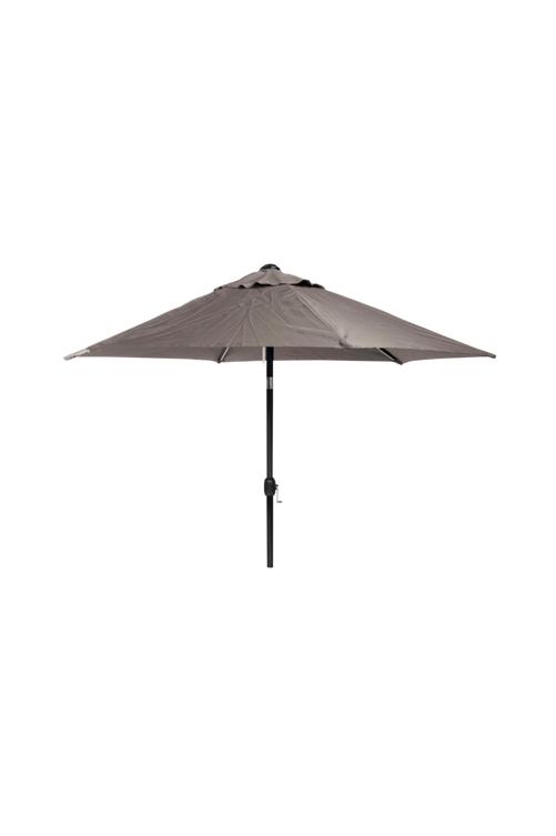 Parasoll 300 cm i aluminium/taupe polyester med vev & tilt. Stomme av svart aluminium och tyg av polyester. Veven gör det enkelt att fälla ned och fälla upp parasollet. En tilt ser till att du kan vinkla parasollet, praktiskt sent på kvällen eller tidigt på morgonen då solen står lågt. Stången är cirka 48 mm i diameter. Notera att parasollfot ingår ej, utan köpes separat. Välj bland flera fina modeller. Material: Aluminium Höjd: 250 cm Längd: 300 cm Bredd: 300 cm