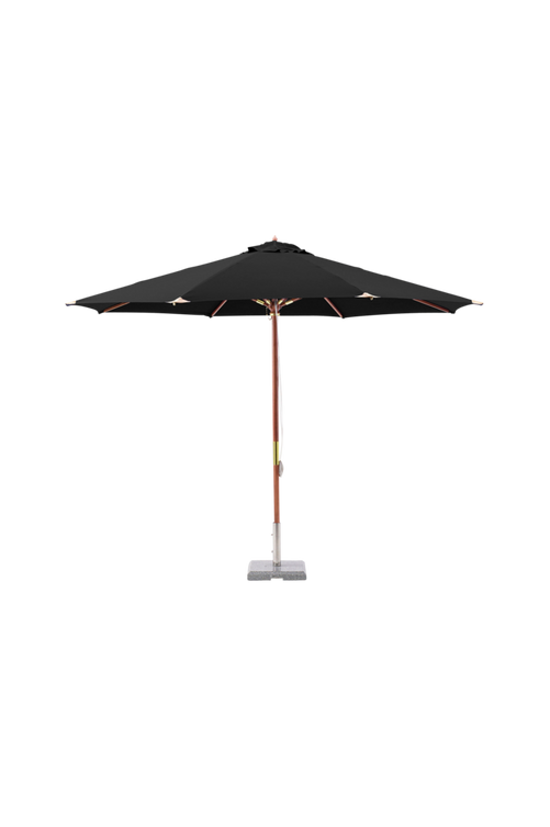 PARASOLL av trä/svart polyester. Diameter 335 cm. Notera att parasollfot ingår ej, utan köpes separat. Välj bland flera fina modeller. Material: Trä/polyester Höjd: 275 cm Längd: 335 cm Bredd: 335 cm