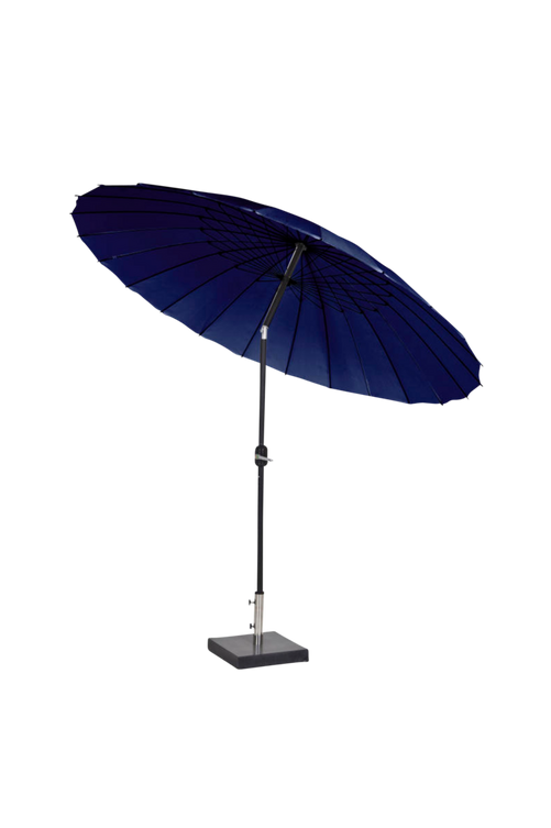 Parasoll med pulverlackerad aluminiumstolpe och stålribbor. Med vev och tiltfunktion. Tillverkad med en 160 g polyester. Levereras utan fot. Parasollets diameter 270 cm. Diameter på stången 3,8 cm.