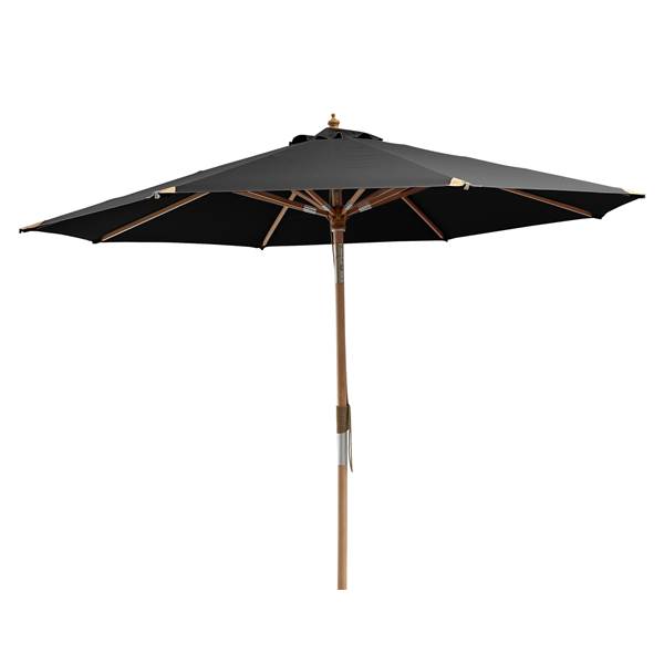 Parasoll, exkl. fot, med tilt. – Svart duk i 270 g polyester och 48 mm stång i certifierat bokträ