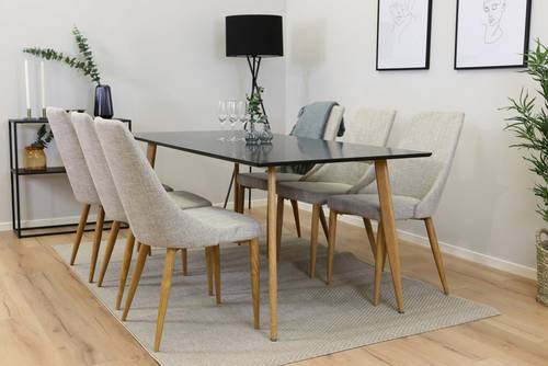 Matgrupp med ett Penally Matbord (180) i samt sex stycken Linnea Matstolar. Mått: 90L, 180W, 75B Mått: 59L, 45W, 91B