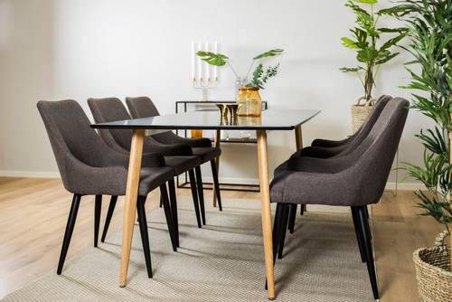 Matgrupp med ett Penally Matbord (180) i samt sex stycken Pia Matstolar i medben. Mått: 90L, 180W, 75B Mått: 60L, 50W, 86B