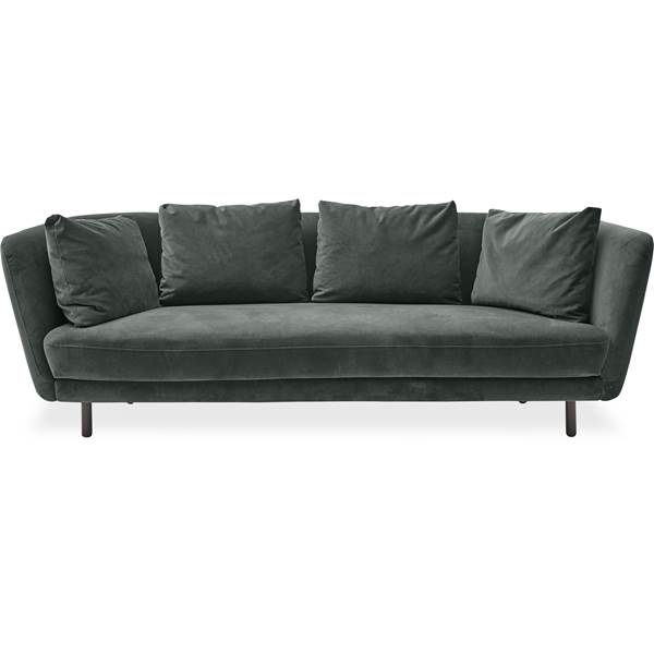 3 sits Soffa, Mini Bonell fjädrar och kallskum, dungranulat, siddehøjde 43 cm. – ben i svartmålat trä