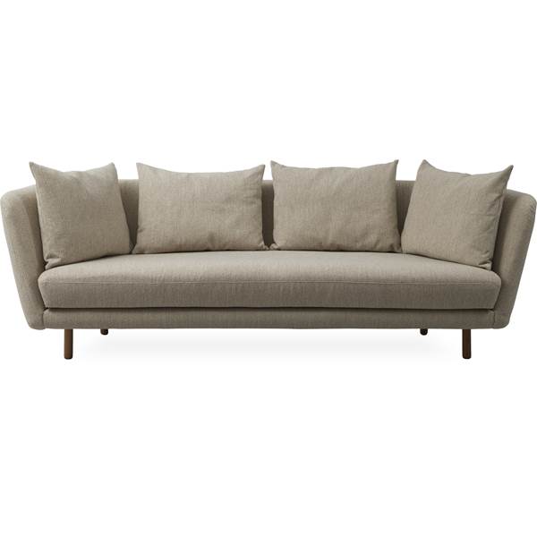 3 sits Soffa, Mini Bonell fjädrar och kallskum, dungranulat, siddehøjde 43 cm. – Crush 50 sand klädsel och ben i oljebehandlad ek