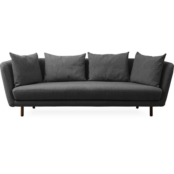 3 sits Soffa, Mini Bonell fjädrar och kallskum, dungranulat, siddehøjde 43 cm. – Crush 130 deep grey tyg och ben i oljebehandlad ek