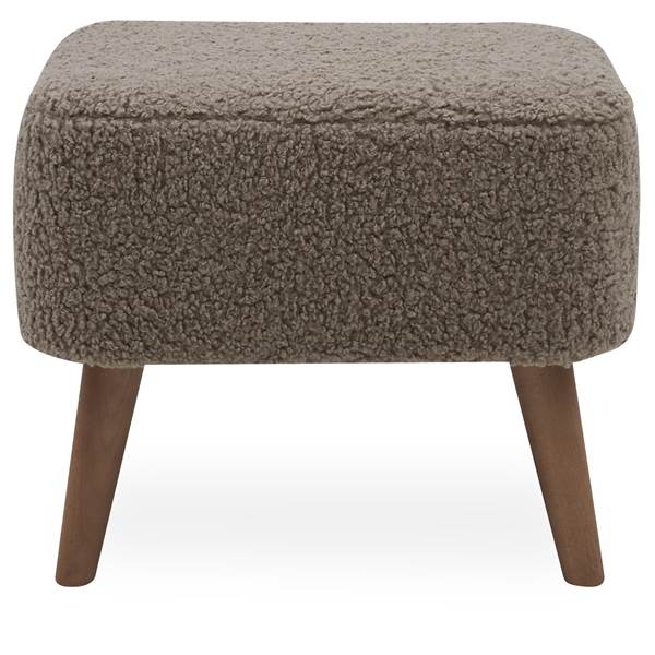 Fotpall. – Glore brown fuskpäls och ben i oljebehandlad ek