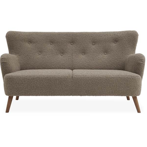 Soffa. – Glore brown fuskpäls och ben i oljebehandlad ek