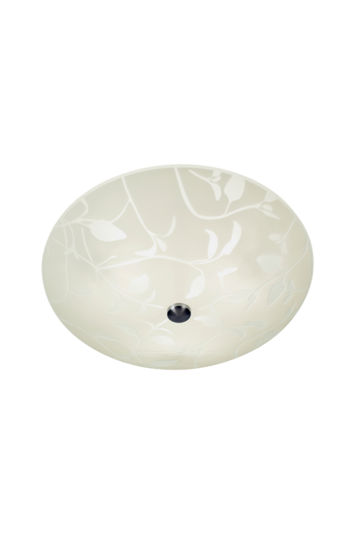 Bladverk plafond i färg vit/stål. Lampans huvudmaterial är glas. 3 x E14 sockel för ljuskälla med 3 x 40W max wattstyrka. Ljuskällor medföljer inte. Lampan monteras på krokupphäng. Lampan ansluts til ström med lamppropp/kopplingsplint. IP-klassificeringen på armaturen är IP20