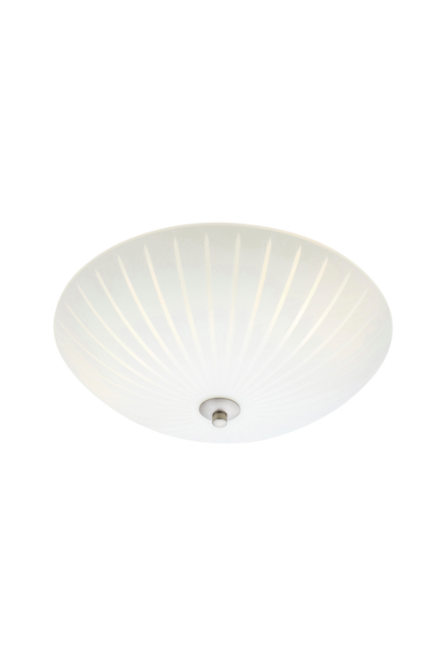 Cut plafond från Markslöjd. Vacker plafond i vitt glas. 35 cm i diameter och höjd 9 cm. Hängs upp i takkrok. Max 2x40W. E14-sockel. Ljuskälla ingår ej. Dimbar. Ojordad