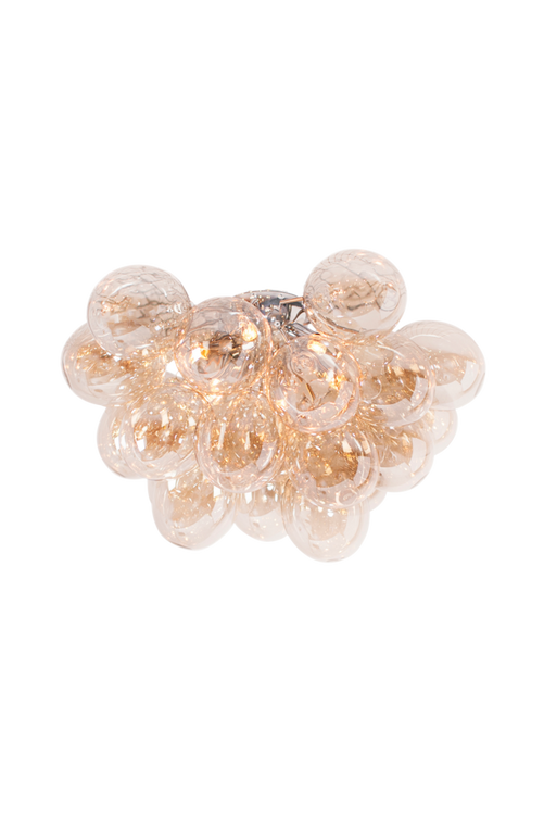 Gross Plafond med sina skira, vackra glaskulor kan nu hänga i din hall eller i ditt sovrum. Plafonden är 50 cm i diameter och innefattar 24 glaskulor. Höjd 27 cm. Sockel 6xG9. Max 40 W. Ljuskälla ingår ej. Olika typer av ljuskällor kan ha stor påverkan på stil och utseende hos lampan. Prova dig fram till ditt eget uttryck! Takkontakt ingår ej på grund av nytt EU direktiv. De finns att beställa separat. Jordad.