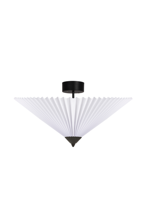 Med sitt grafiska uttryck blir plafonden Matisse den perfekta detaljen i det moderna hemmet. Lampan har en veckad textilskärm och är dekorerad med en matchande veckad topp i matt lackerad metall. Lampskärmen är nedsänkt från en matt metallstång som är monterad på en takkopp i matchande färg. På insidan av lampskärmen ryms tre ljuskällor för att sprida ett jämnt och fint ljus. Design: Patrick Hall. Bredd 60 cm, djup 60 cm och höjd 39 cm. Lamphållare: 3xE27 Max 60W. Ljuskälla medföljer ej. Ojordad. Takkontakt ingår ej på grund av ett nytt EU-direktiv. Takkontakter finns att beställa separat.