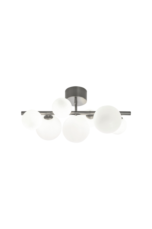 Plafond i metall och glas. Monteras i taket med krok. Ljuskällor ingår inte.