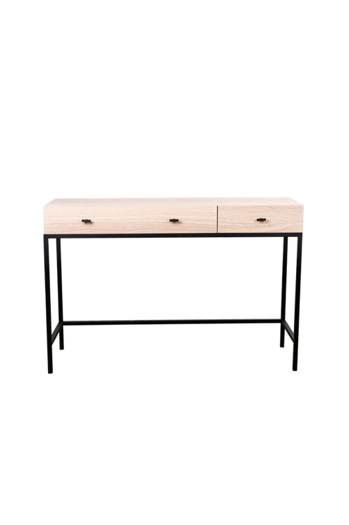 Stilrent avlastningsbord med lådor. Ekfaner möter svartlackerat undnerrede. Kombinera gärna med andra möbler från samma serie.