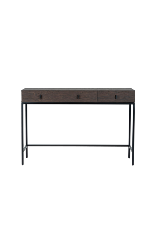 Stilrent avlastningsbord med lådor. Ekfaner möter svartlackerat undnerrede. Kombinera gärna med andra möbler från samma serie.