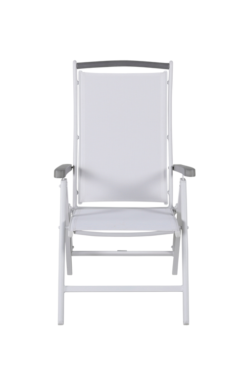 Alf Positionsstol med en sittdyna i 70% PVC/30% polyester och stolsben i aluminium. Ryggstödet är fällbart i fem olika lägen. Mått: Höjd: 110 cm, Bredd: 59 cm, Djup: 73 cm. Sitthöjd: 44 cm, Sittbredd: 46 cm, Sittdjup: 44 cm. Stolen kräver ingen montering. Säljs i 2-pack.