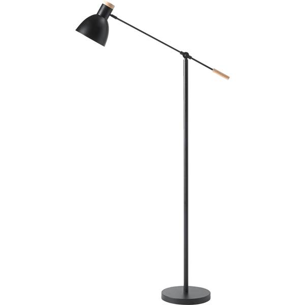 Golvlampa, max. 28W, e14-sockel, exkl. glödlampa med 3,5 m sladd och med kontakt. – Svart metallskärm med trätopp och svart metallfot