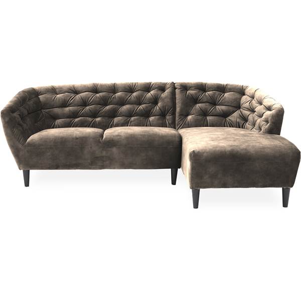 högervänd Soffa med schäslong, polyeterskum, siddehøjde 46 cm. – Decent 03 Beige textil och ben av svartmålat gummiträ