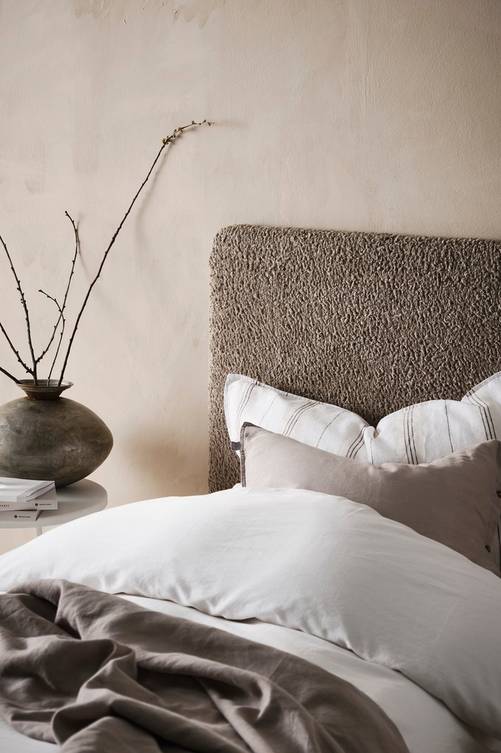 Vägghängd sänggavel i mjuk teddy med stomme av plywood och skumfyllning. RINGVIDA är en mysig sänggavel som passar perfekt för att luta sig tillbaka mot och läsa en bok, samtidigt som den ramar in din säng på ett stilfullt sätt. Sänggaveln monteras mot väggen bakom din resårmadrass. Material: 100% polyester, plywood och skumfyllning. Storlek: Bredd 90 cm, höjd 65 cm, djup 5 cm. Skötselråd: Dammsugning. Tips/råd: Komplettera med ett matchande överkast och kuddfodral i färger du tycker om.