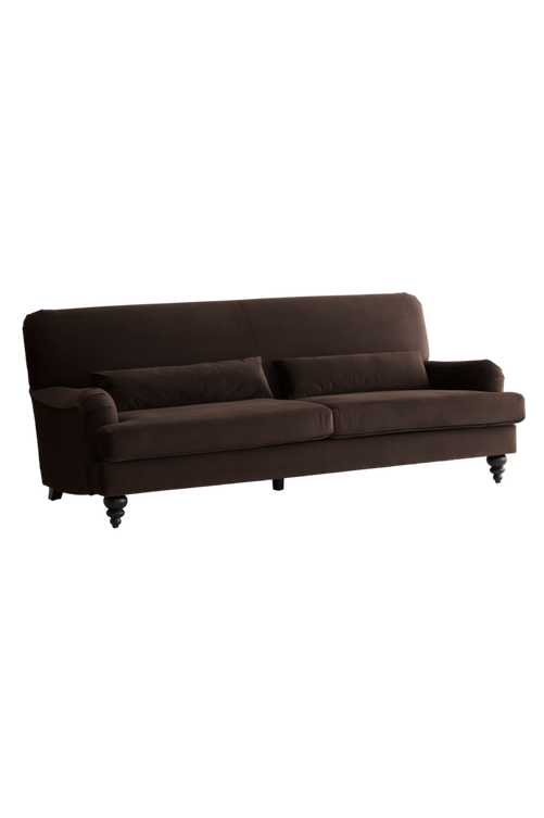RIVERDALE är en tidlös, lyxig soffa i klassisk Howardstil. Howardsoffan har utan konkurrens intagit platsen som den mest populära soffan genom tiderna. Med sina mjuka rundade hörn och svarvade träben har den blivit en omtyckt möbel för många generationer. RIVERDALE 3-sits soffa har en rak modell och är med sin varma karaktär mycket lättplacerad och passar både i ett modernt eller klassiskt hem. Den har inte bara en stabil stomme av furuträ och plywood utan även en mycket god sittkomfort tack vare den fantastiska uppbyggnaden av kallskum, zickzackfjädring, resårband samt polyesterstoppning som är ger en skön och komfortabel känsla. RIVERDALE 3-sits soffa består av sammet i brunt eller offwhite. Klädseln är ej avtagbar. RIVERDALE är en klassisk soffa som aldrig kommer att gå ur tiden! Storlek: Höjd 88 cm, bredd 214 cm, djup 99 cm, sittdjup 55 cm, sitthöjd 48 cm. Frihöjd under möbel: 15 cm. Skötselråd: Dammsugning. Formgivare: Jotex Design Studio