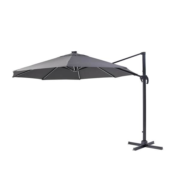 Hängparasoll, exkl. fot. – Stång i aluminium, ribbor + stödstång i stål och duk i 250 g grå polyester