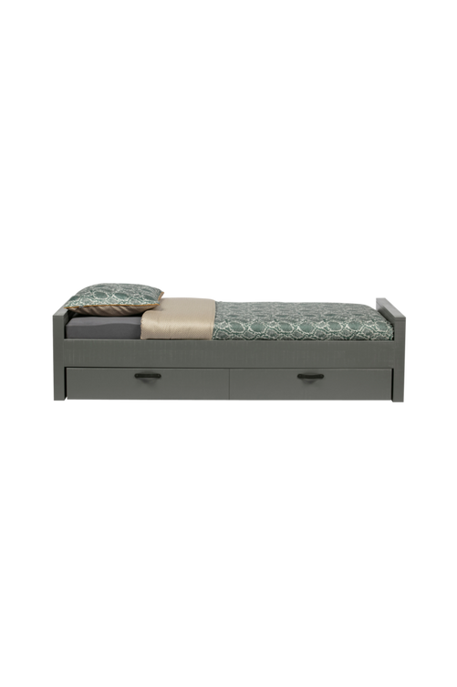 Tuff, modern enkelsäng Massiv furu [FSC] lerlackerad obs ! sänglåda får köpas separat Grovsågat trä: Denna möbel är gjord av grovt sågat trä. Detta innebär att träet har sågats över och ger det ett rustikt slipat utseende. Detta ger möblerna en genomlevd vintage look. På grund av denna behandling kan ojämnheter och små sprickor vara extra synliga. Dessa är kännetecken för grovsågat trä. Var och en är därför unik! Sängen levereras utan lamellram och madrass. Madrassstorlek som passar ska vara 90x200cm. Levereras som en enkel byggsats med en tydlig monteringsanvisning.