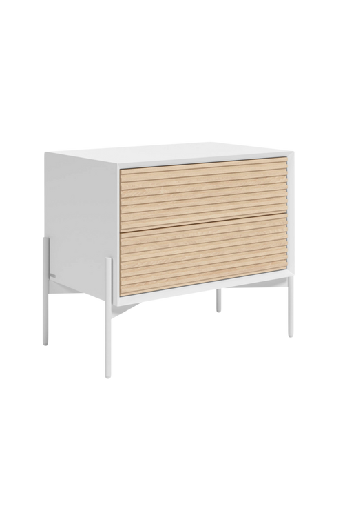 Marielle sängbord av askfaner. Designen leker med askfanerens färgtoner, tack vare skuggorna och träets fibermönster