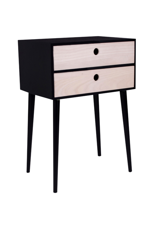 Sängbord med 2 lådor i naturligt trä. Mått: Längd: 32 cm. Bredd: 45 cm Höjd: 65,5 cm. Vikt: 3,6 kg Material: Paulownia trä. Ej monterad.