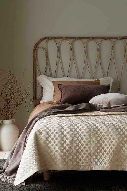 Huvudgavel i rotting med ett dekorativt mönster. Gaveln ställs på golvet. Mått: Bredd 181 cm, höjd 137 cm, djup 4 cm.