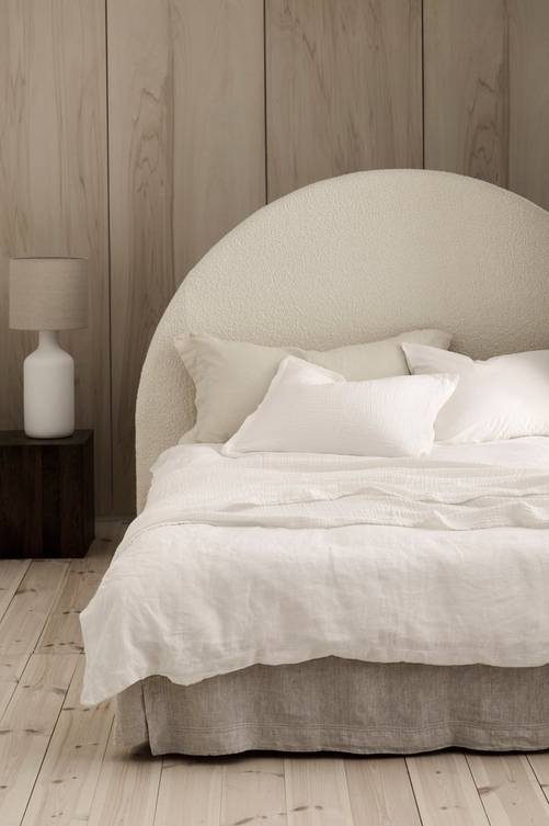 Sänggavel i valvform med klädsel i fårskinnsimitation av 100% polyester. Stomme i furu och plywood. Skumfyllning. Sänggaveln ställs på golvet. Levereras monterad. Vill du titta närmare på ett tyg och känna på kvaliteten? Mejla oss på customerservice@ellos.se eller ring 033-33000 och beställ hem ett gratis tygprov! Ange det artikelnummer du ser längst ner i denna beskrivning. Produkten innehåller FSC-certifierat trä, avverkat från ett ansvarsfullt skogsbruk som tar hänsyn till människor och miljö.