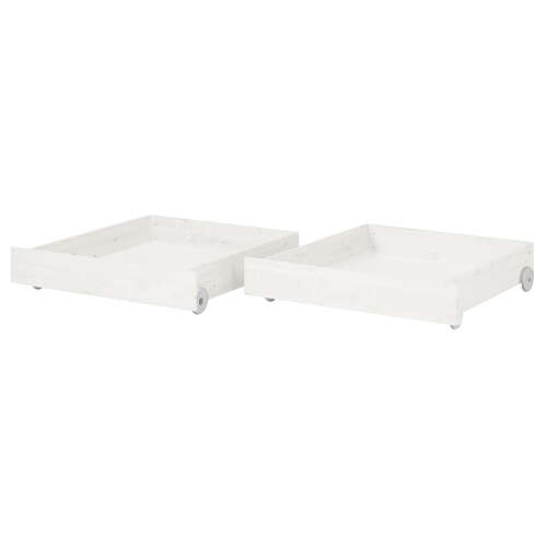 Utförande: massiv furu. Vitpigmenterad. Hjul med gummi.
