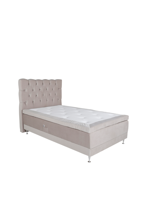 Våxtorp, en Modern Ställbar Kontinentalsäng i enklare tappning. I ett sammetstyg. En säng som kommer ge ett maffigt och lyxigt intryck till sovrummet med sin höga höjd uppbyggd i 2 lager för att ge en god sömn. Sängramen är uppbyggd med en massiv träram i gran för en stabil grund. Resårmadrassen är uppbyggd av pocketfjädrar med 5 komfortzoner som följer kroppens former samt stålkonstruktion med motor från Linak. Sängen är steglöst inställningsbar, i sitt- och liggställning, som styrs med hjälp av fjärrkontroll och erbjuder en god komfort. Den pikerade bäddmadrassen h är uppbyggd av mickrofibervadd och kallskum. Sammantaget är sängen uppbyggd för att ge en skön sovkomfort samt ge ett enhetligt intryck i sin helklädda design. Hela sängen vilar på champangeben i silvrig aluminium. Kombineras med Skogaby, en Fristående lyxig sänggavel i helklädd design i ett sammetstyg med dekorsömmar och djuphäftade klädda knappar. Med denna sänggavel är det enkelt att skapa en lyxig känsla till ditt sovrum. Ett tips är att ställa gaveln mellan väggen och sängen så krävs ingen förankring. Material resårmadrass: ram i granträ, plywood och pocketresår, Höjd resårmadrass: 19cm, Material bäddmadrass: syntetiskt fiber och polyether, Höjd bäddmadrass: 9cm, Totalhöjd säng: 58cm. Lättare montering krävs.