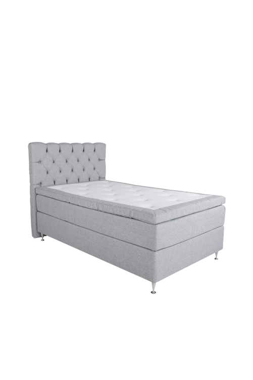Fjärås, en Modern Lyxig Kontinentalsäng i ett slitstarkt polyestertyg som kommer med ett dubbelt pocketresårsystem. En säng som kommer ge ett maffigt och lyxigt intryck till sovrummet med sin höga höjd och många madrasser, uppbyggd i 3 lager för att ge en god sömn. Sängbotten är uppbyggd av en massiv träram i gran med ett fjädersystem i pocket som hjälper till att ge dig rätt avlastning och stöd för hela kroppen. Resårmadrassen är uppbyggd av pocketfjädrar med 7 komfortzoner som är anpassade för att ge maximal avlastning när du sover vare sig du sover på mage, rygg eller sidan. Den pikerade bäddmadrassen h är uppbyggd av mickrofibervadd och kallskum som kommer ge dig extra följsamhet. Sammantaget är sängen uppbyggd för att ge en extra skönt sovkomfort som möjligt samt ge ett enhetligt intryck i sin helklädda design. Hela sängen vilar på champangeben i silvrig aluminium. Kombineras med Skogaby, en Fristående lyxig sänggavel i helklädd design i ett polyestertyg med dekorsömmar och djuphäftade klädda knappar. Med denna sänggavel är det enkelt att skapa en lyxig känsla till ditt sovrum. Ett tips är att ställa gaveln mellan väggen och sängen så krävs ingen förankring. Material resårmadrass: ram i granträ, plywood och pocketresår, Höjd resårmadrass: 21cm, Material bäddmadrass: syntetiskt fiber och kallskum, Höjd bäddmadrass: 9cm, Totalhöjd säng: 69cm. Lättare montering krävs.