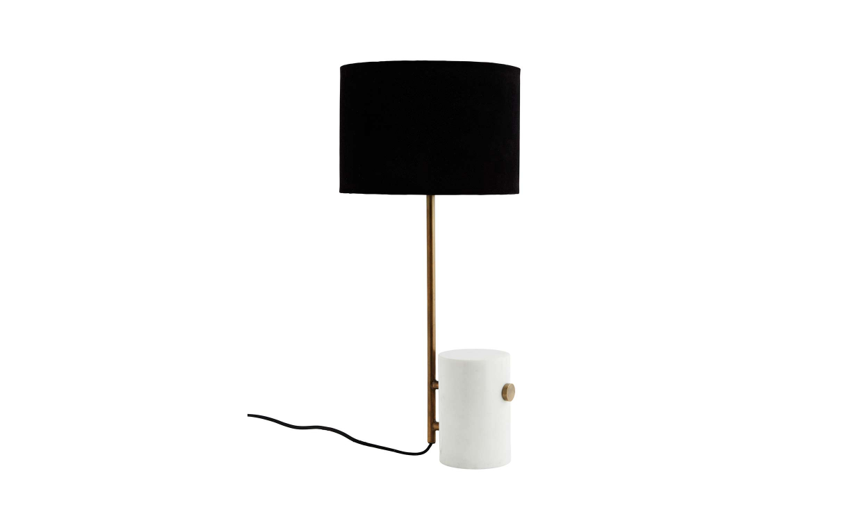 Sara är en lampa med unik design från Madam Stoltz. Lampan har en fot i vit marmor med en mässingsfärgad stång som håller upp den svarta sammetsskärmen. Sara blir ett stilrent och iögonfallande tillskott i ditt hem!Design & egenskaperBordslampa med lampfot i vit marmor och mässingsfärgat stål med svart lampskärm i sammet.Svart sladd 2 m lång med strömbrytare och 2-stickskontakt.Sockel E27, max 25W. Ljuskälla ingår ej.