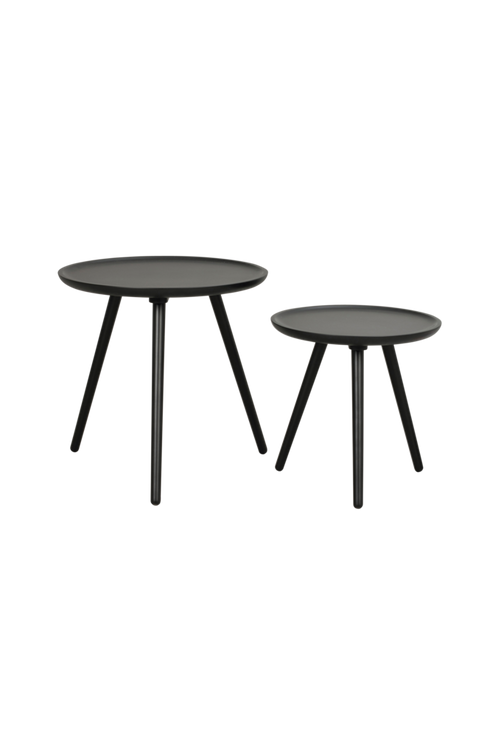 Daisy satsbord i två delar. Lackat bord i MDF med tre ben. Urfräst toppskiva som ger en snygg lätt skålad känsla. Stora bordet har måtten Ø 50 cm, höjd 50 cm, lilla bordet Ø 40 cm, höjd 40 cm. Montera endast ben.
