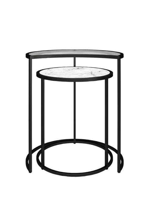 För många månar sedan påbörjade vi en resa utanför denna värld för att införliva våra designkoncept direkt från vår fantasi in i ditt hem. Mr. Kates kollektion Moon Phases är verkligen en samling dekorativa, drömlika föremål som kommer till liv. En smal stomme omger en elegant, halvmåneformad, räfflad glasskiva och en modern, marmorliknande, rund bordsskiva på satsbordet nedanför som väver samman modern minimalism med underbara kurvor. Satsborden Moon Phases från Mr. Kate är designade särskilt för mindre rum och har mångsidighet i fokus. En av de många distinkta detaljerna som gör dessa satsbord verkligen unika är de oändliga sätten på vilka de kan placeras, separat eller tillsammans. När det runda, ogenomskinliga bordet nedanför dras ut från det transparenta, halvmåneformade bordet ovanför, kan du se månens olika faser genom det räfflade glaset, vilket skapar ett verkligt oväntat och unikt designelement som vi bara inte kan sluta imponeras av. Konstruerat av slitstark, pulverlackerad metall, MDF och 1 cm härdat glas, är satsborden lika stabila som de är eleganta. Dekorera dessa unika bord med träföremål och gröna växter för att skapa en varm men modern stämning eller låt dem vara en plats för dina bästa, konstnärliga prydnadssaker för att skapa en lekfull stämning. Slut cirkeln och komplettera med Moon Phases avlastningsbord eller soffbord från Mr. Kate. Perfekt för din stil: modern/dramatisk, glamorös, vintage, industriell, minimalistisk. Är du osäker på hur du definierar din stil? Ta Mr. Kates quiz "Vad är min stil?".