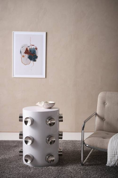 Sidobord av rostfritt stål. Det runda bordet har spännande design. Bordet är i pulverlackerat stål med kromad finish på de runda dekorationerna. Bordet är en glädjekick som ger en pigg känsla i ditt rum. Ett sidobord som SATURNUS kan du ha på många ställen i hemmet, utmana din fantasi. Material: Stål. Storlek: Höjd 45 cm, bordsskiva ø 41 cm. Skötselråd: Torkas av med lätt fuktad trasa. Tips/råd: Bred vid sängen blir SATURNUS ett sängbord med nytänk.