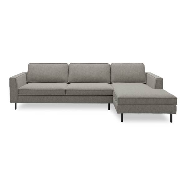 3 sits högervänd Soffa med schäslong, Granulat/fiberfyllning, kallskum, siddehøjde 48 cm. – Rate 108 Wood textil och ben i svart metall